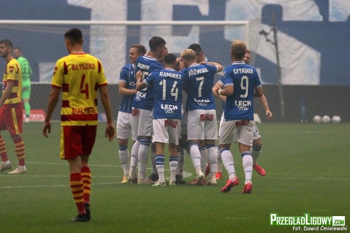Lech Poznań w meczu 37. kolejki PKO Ekstraklasy pokonał Jagiellonię Białystok 4:0 (4:0). Bramki dla Kolejorza strzelili Tiba, Kamiński oraz dwie Gytkjaer. Na trybunach zasiadło 8 483 kibiców.